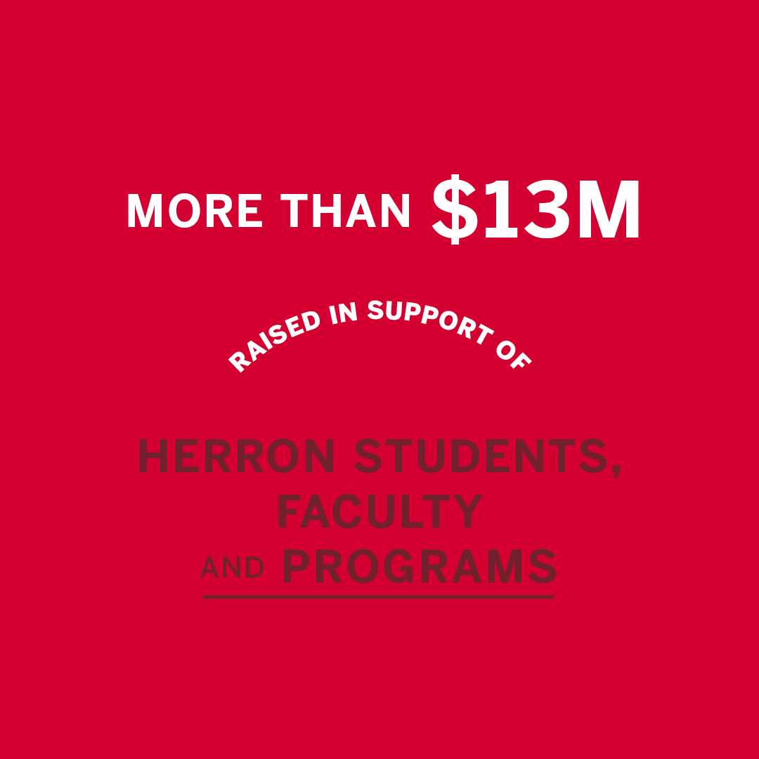 Your extraordinary generosity not only met but exceeded the Herron campaign goal—resulting in more than $13 million raised to support students, faculty, programs, and so much more. With your support, we can fulfill the promise of educating the next generation of leaders in a world that requires a unique combination of creativity, conceptual skills and technical abilities. We will help artistic expression to flourish, communities to thrive and society to advance. And we have you to thank for that.