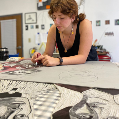 - At the intersection of Shelby and East Raymond Streets in the historic Garfield Park neighborhood, Carlie Foreman (B.F.A. Sculpture '19) designed and coordinated the creation of a 60-foot mural titled "You, Me, We." The project involved almost 150 volunteers and was made possible by SoIndy, Buckingham Companies, the Lilly Endowment Community Scholarship Program, and Big Car Collaborative.